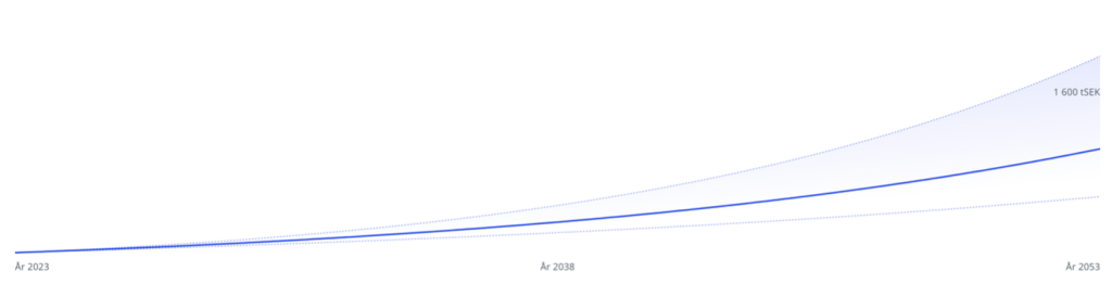 Om du har ett startkapital på 10 000 kr och sparar ytterligare 1 000 kr varje månad uppgår sannolikheten till 50%, enligt Lysa, att du har minst en miljon kronor inom 30 år. Detta om fördelningen i din portfölj är 75% aktier och 25% räntor.
