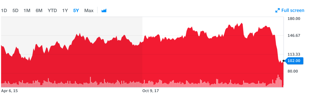 Securitas har från dagens datum, 6 e april, tappat med 36% från årsskiftet och är en av de storbolagsaktier på den svenska börsen som tappat mest i värde.